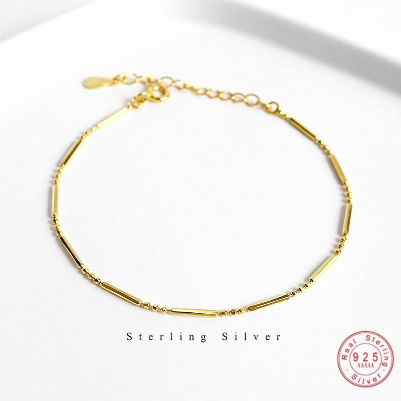 S925 Sterling Silver/Gold Shaped Long Bead Chain Bracelet